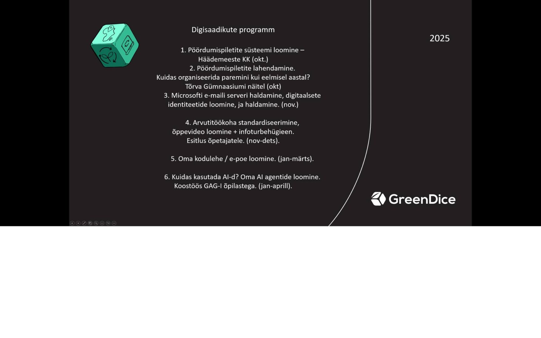 Väljavalitud digisaadikutele tegime eile GreenDice’i teenuse raames esimese videokoolituse, eesmärgiga luua koolile toimiv pöördumispiletite portaal, kus noored saavad edaspidi panna käed ja oma pea külge ning aidata koolipersonali digimuresid lahendada.