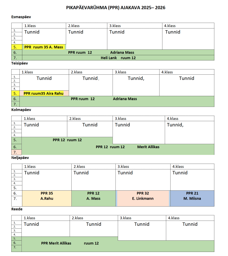 PIKAPÄEVARÜHMA AJAKAVA 2025 – 2026 (sh konsultatsioonid ja  õpiabitunnid)